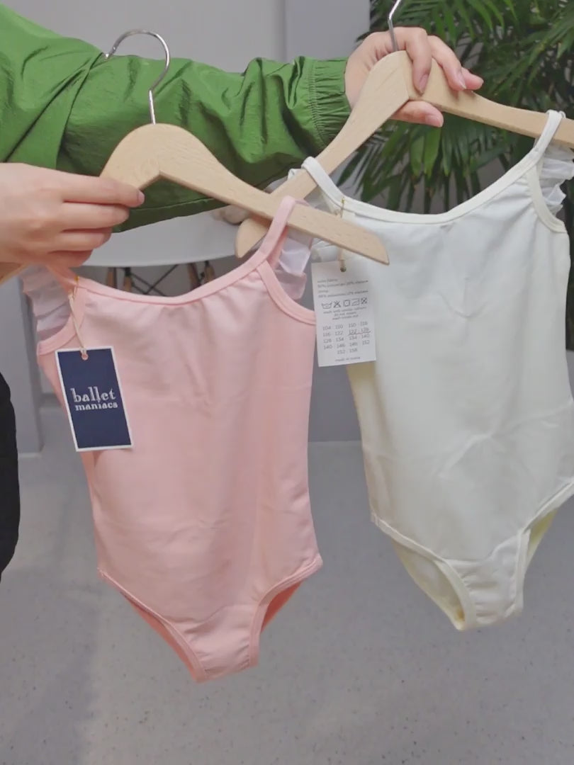 Girls Pink Doll Ruched Leotard And Wide Straps
